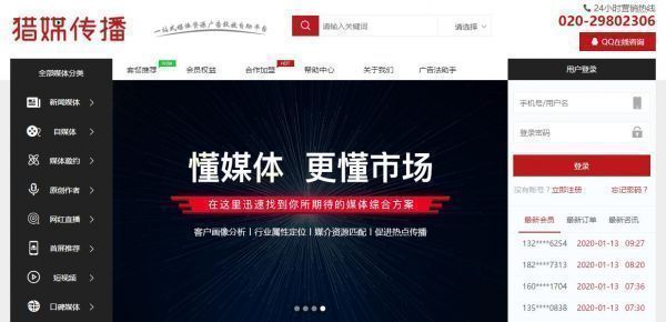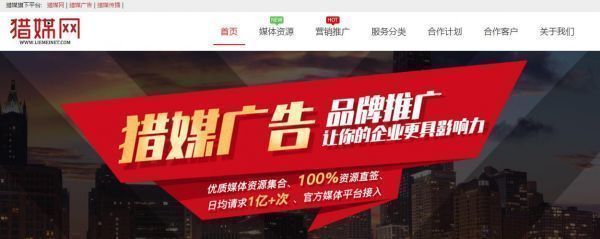 猎媒传播——一站式媒体资源广告投放自助平台。聚集10万+媒体资源,为甲方企业提供新闻撰写,新闻发稿,媒体邀约,自媒体发稿,网红直播,短视频营销,知识营销等服务。