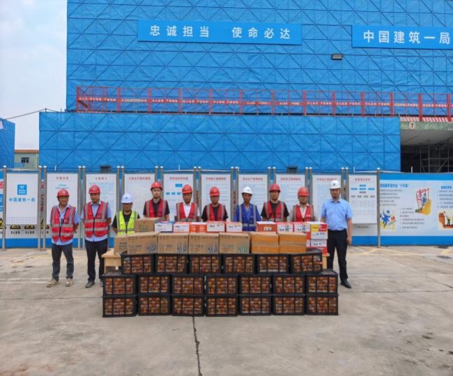 在“五一”国际劳动节来临之际,中建一局深圳新桥标杆及创谷(二期)整治提升项目联动宝安区新桥街道新二社区工作站,开展节前慰问活动,向坚守一线的建设者与社区困难居民送上节日祝福和暖心关怀。
