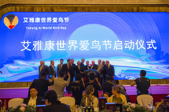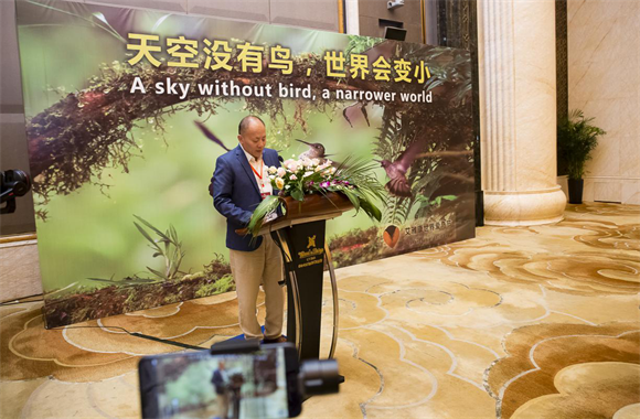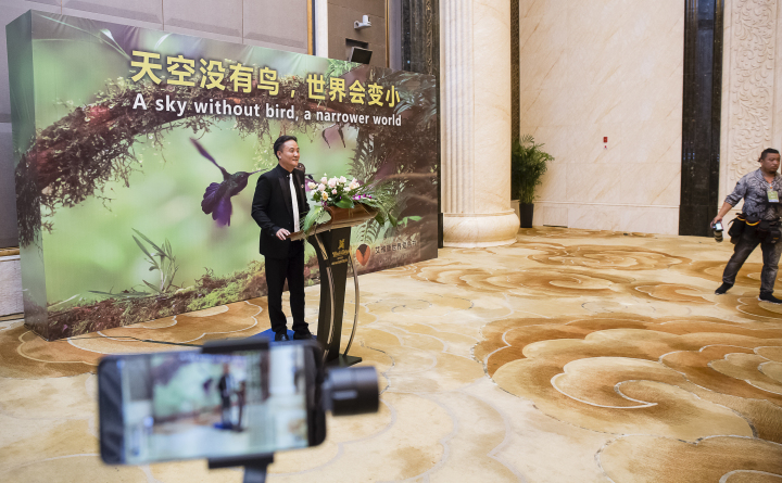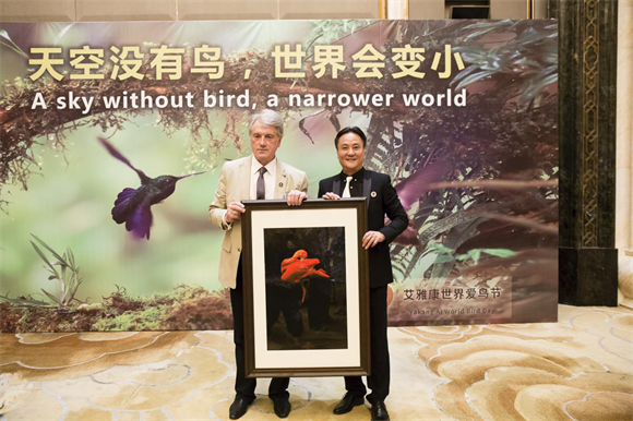 今天我代表中国生物多样性保护与绿色发展基金会协助艾雅康先生共同发起“艾雅康世界爱鸟节”公益行动。深感责任重大。