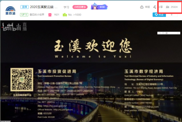 本次会议全程在某直播平台直播,共有两万五千多人次在线观看,近百家企业在直播中通过弹幕等方式与主持人进行互动,咨询到玉溪投资的相关政策等问题。这是玉溪在云端招商领域的一次大胆尝试,获得了参与企业的一致好评。