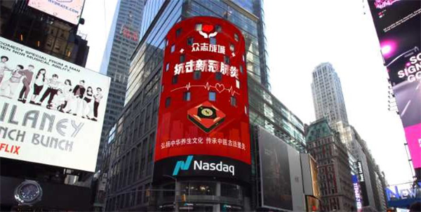 2020年3月25日,在此特殊的疫情时期,中华墨御堂代表中国中医养生企业,荣登“世界第一屏”——纽约纳斯达克,向世界展现中国企业形象。为中医发声、为中国加油。