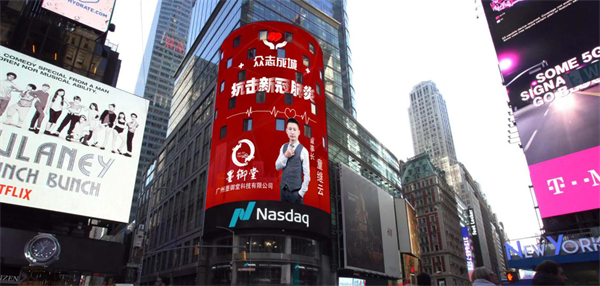 纳斯达克大屏位于纽约时代广场旁的时报广场四号,历来被称为“世界第一屏”,是吸引全球目光的最佳窗口之一,更是全球高端品牌展示的首选渠道,众多优秀企业、高端品牌长期通过这一窗口传播品牌形象。在这里,年均客流量数千万人次、人员流量上亿人次;而这里播出的信息多次引起BBC、路透社等传媒巨头的关注,这使千万的中国企业跃跃欲试,均想登上这不同凡响的”世界第一屏”,渴望离世界之巅更进一步。这个被誉为“世界第一屏”的屏幕,代表着成功与财富。随着全球化进程的不断加快,纳斯达克展示屏逐渐成为中国优秀企业与民族品牌走向世界的阶梯。能够荣耀登上纳斯达克大屏的品牌,都具有无限潜能,必将成就卓越。