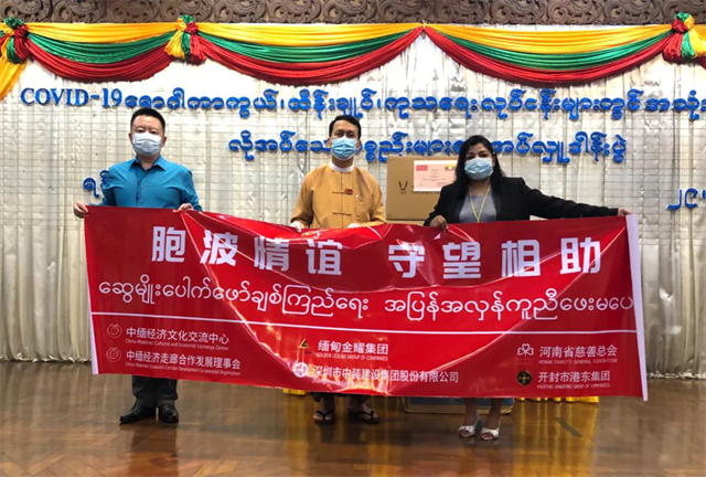 在中缅建交70周年之际,河南慈善总会携手开封市港东集团向缅甸捐赠首批防护口罩防疫物资,并在缅甸大使馆、仰光省等地移交。河南省慈善总会副会长单恒伟、开封市港东集团董事长陈俊延、缅甸驻华大使吴苗丹佩、仰光省省长吴漂敏登等出席捐赠仪式。