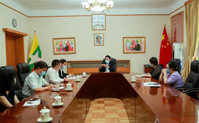 7月16日,缅甸驻华大使吴苗丹佩邀请中缅中心到缅甸大使馆座谈交流,专题探讨如何进一步促进中缅投资和经贸合作。缅甸驻华大使吴苗丹佩、商务参赞杜雪欣吴、中缅经济文化交流中心(简称“中缅中心”)高级顾问徐向春、秘书长吴胜等参加了座谈。