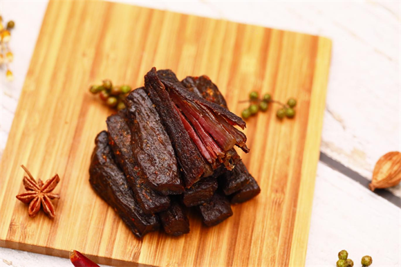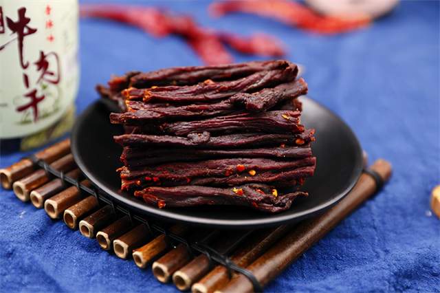 2.犇黔岭超干牛肉条含有人体所需的多种矿物质和氨基酸,既保持了牛肉耐咀嚼的风味,又久存不变质。牛肉干的制作首先要选择上等的原料,其次是制作工艺和制作时间,晒干时还得考量日照的时间,道道工序都紧密把关。精选食材取自于中国“五大名牛”之一的贵州关岭小黄牛,高端部位选材,无菌环境风干,口感脆而不硬,营养丰富,适合大众口味,是家庭必备首选零食系列产品!