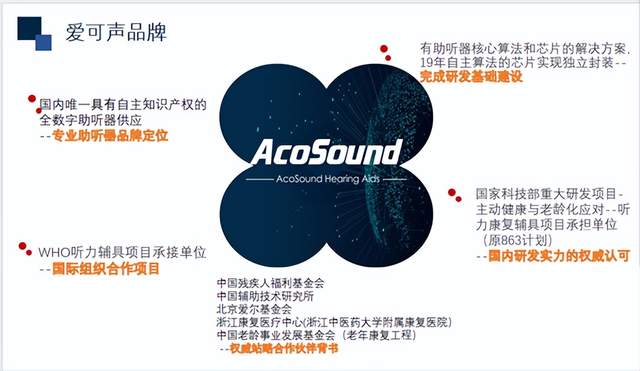 爱可声由来自浙江大学生物医学工程专业的李鹏博士于2011年9月创立,是国内唯一一家专注于研发国产数字助听器芯片、且拥有自主知识产权算法的助听器生产商。