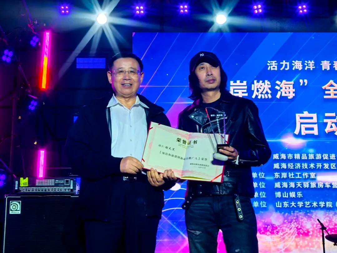 (8月14日谢天笑接受文昌文旅授予的荣誉。)