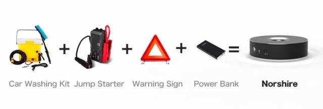 一个Norshire就相当于洗车设备+起动器+警示标志+充电宝。