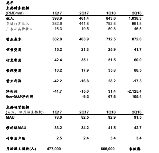 没有多元化的直播内容和直播体系支持,收入的来源就极为单一,占比高达95.5%的“直播打赏”收入显然是虎牙孱弱的创新能力最为直接的体现,而这份切肤之痛同样漫延到了虎牙运营数据上,付费用户数量的停滞不前以及MAU指数的下跌,所带来的结果就是高达21.254亿元人民币(约合3.212亿美元)的净亏损。