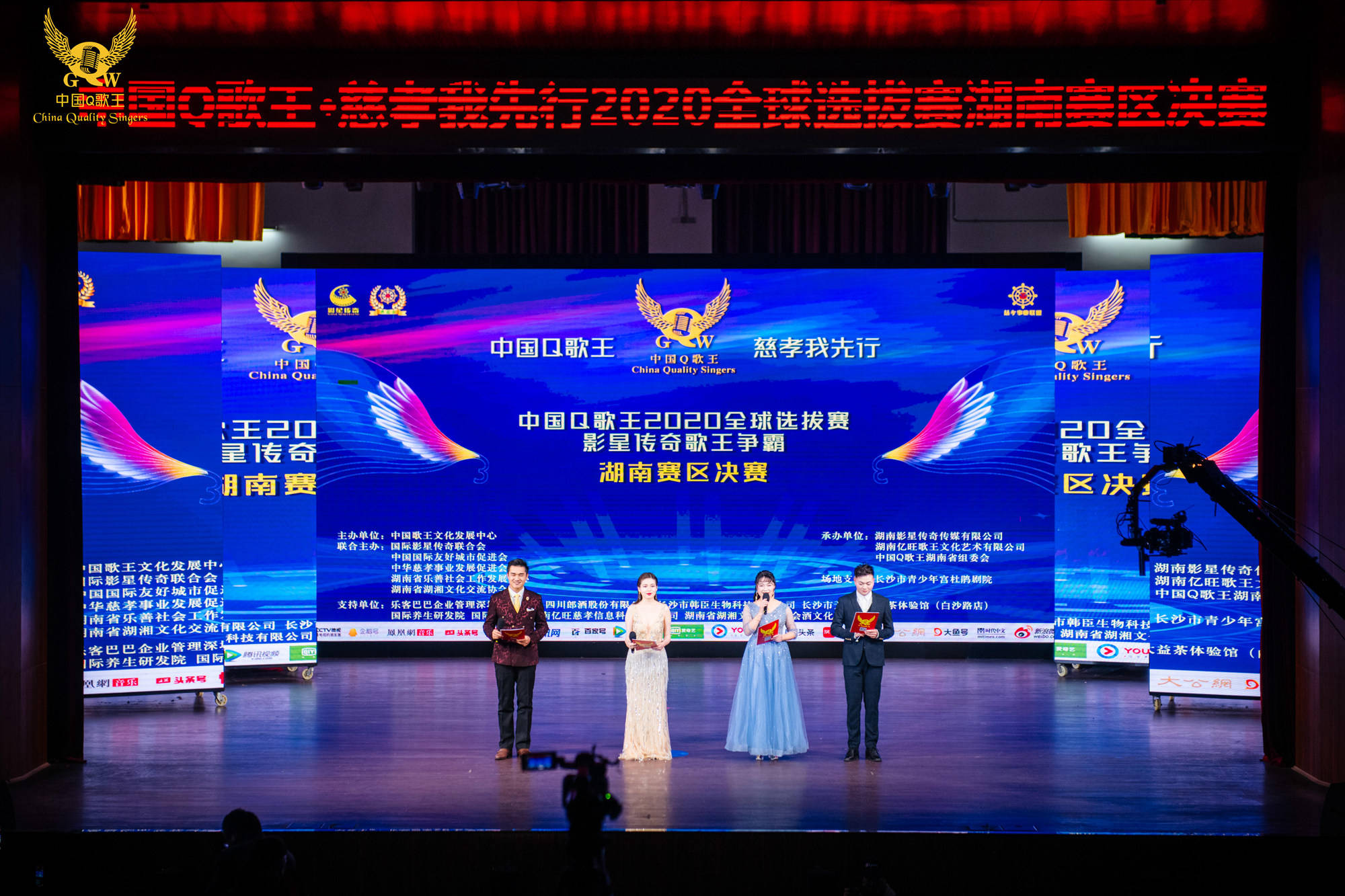 500多名观众一同来到湖南长沙青少年宫杜鹃剧院,共同见证!2020年12月18日晚,“中国Q歌王·慈孝我先行”2020全球选拔赛影星传奇歌王争霸湖南赛区决赛的荣耀收官时刻,与此同时,《中国Q歌王2020全球选拔赛》历时九个多月的赛事旅程中经过激烈角逐成功诞生了十一名二星歌王、七名一星歌王、两名优秀歌手、一名最佳表演奖画下完美句号。