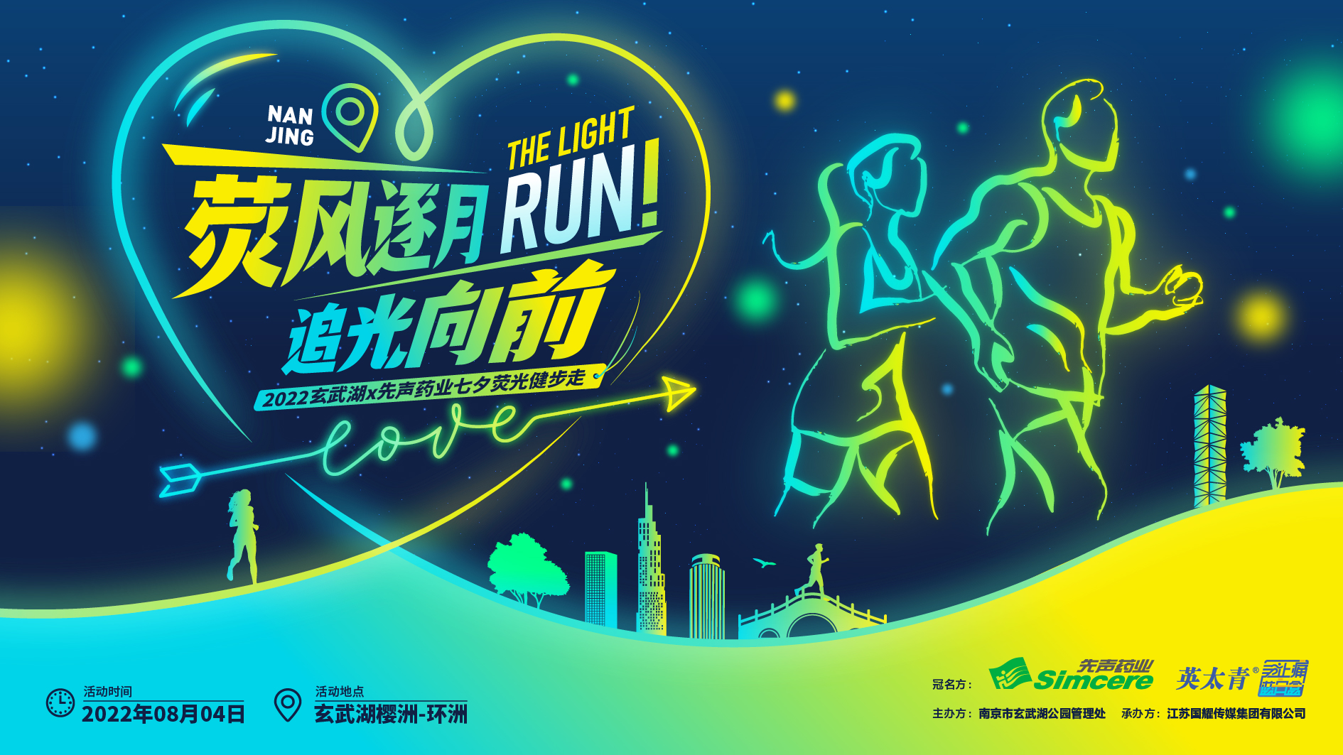2022年08月04日,恰逢七夕节当晚,由先声药业旗下明星品牌英太青联合南京玄武湖公园管理处共同打造的时尚健康活动——“七夕荧光健步走”将在南京玄武湖樱洲-环洲燃力开启!