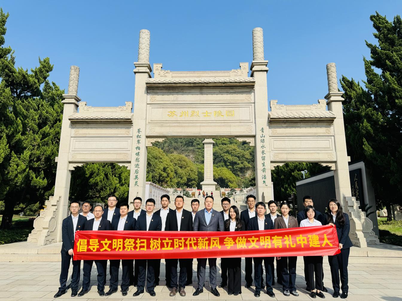 3月31日下午,中建三局苏州吴江开发项目部及苏州吴中开发项目部全体党员前往苏州烈士陵园开展清明节“倡导文明祭扫 树立时代新风 争做文明有礼中建人”主题教育活动。