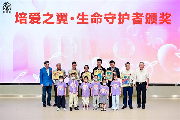 在此次大会中,希望树荣获“培爱之翼·生命守护者”爱心企业称号,由北京陆道培医院运营执行院长陆鸣冈与医疗执行院长刘开彦亲自颁发奖杯、血液病患儿们还送上了亲手绘制的暖心画作,表达最真挚的感谢与祝福。希望树外事部负责人陈训龙先生表示,“这不仅是一份荣誉与认可,更是对希望树多年来坚守社会责任、持续投身公益事业的高度褒奖与充分肯定。”