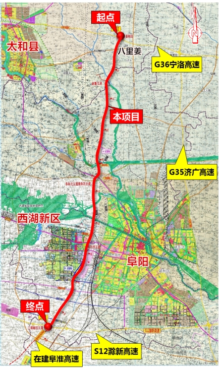 作为安徽省高速公路网“五纵十横”公路网中至关重要的联络线(S25),徐淮阜高速阜阳段全长约48公里,设计为双向四车道,时速120公里。自徐州西环高速引出,一路延伸,最终接入S12滁新高速,顺接S33阜淮高速,有效衔接G1516盐洛高速、G35济广高速、G36宁洛高速等多条干线,极大优化区域路网,为沿线颍泉区、太和县等地产业发展注入强劲物流动力,助力招商引资和产业升级。