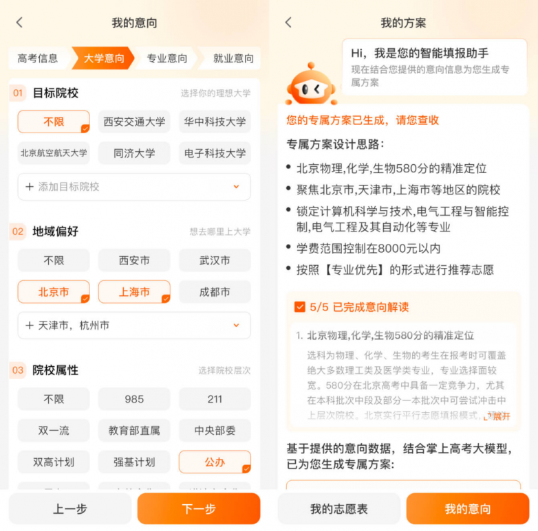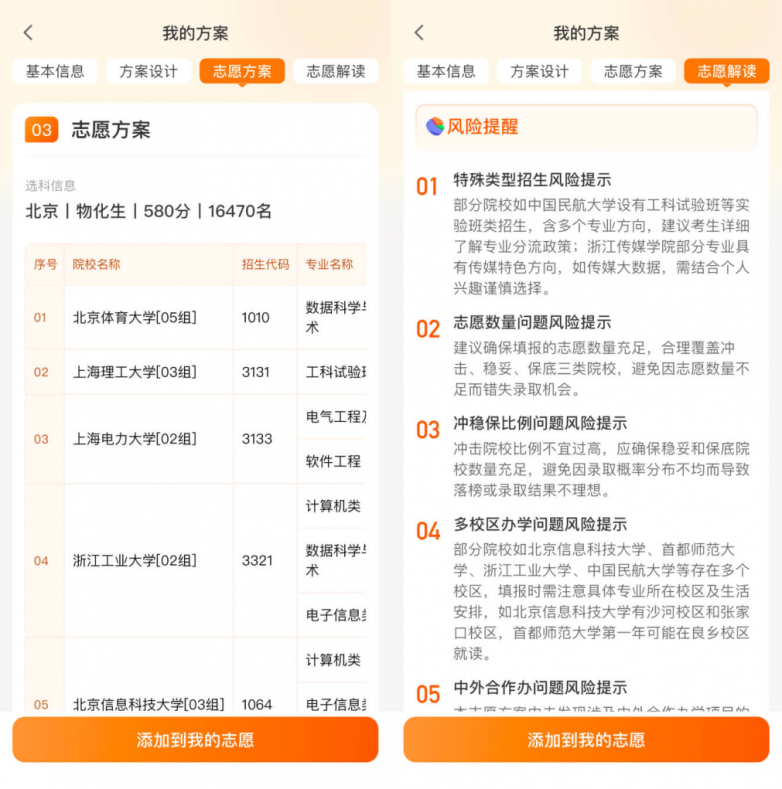 “我们做逻辑说明书,本质是想让志愿填报从盲选变成理性决策。”掌上高考负责人表示,平台生成的志愿报告不仅包含院校专业清单,还会详细分析“推荐理由”,比如某所学校的录取概率、专业就业方向与薪酬水平,同时提示潜在风险。“家长和考生最怕不知道为什么推荐,我们把推荐逻辑讲透,就是想让他们填志愿时心里有底,从根源上规避滑档风险。”