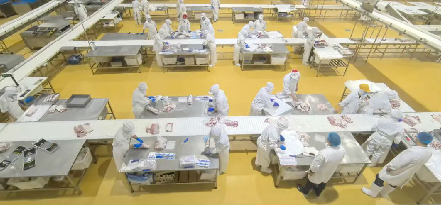 精工艺:12道流程一道不少——宰前检验、屠宰、剔腿、淋巴摘除、胴体清洗、排酸、分割…… 连屠宰污水都有专业设备处理,干净又环保;