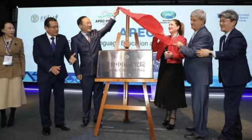 “秘鲁中国研究院”是北京语言大学与秘鲁圣伊格纳西奥德洛约拉大学联合共建的海外首个集智库、教学、科研为一体的综合型机构,于2024年11月14日在秘鲁利马举办的第三届亚太经合组织教育论坛开幕式上正式签约揭牌,由北京语言大学校长段鹏与秘鲁前副总统、圣伊格纳西奥德洛约拉大学创始人劳尔·迭斯·坎塞科·特里共同签署合作协议,秘鲁国会主席等共同揭牌,获11个经济体政要与学者见证。
