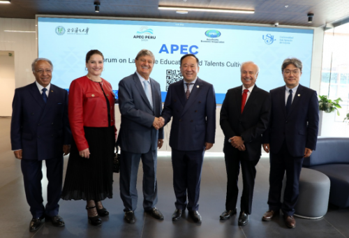 2024年4月特里阁下到访北语,与段鹏校长就合作建设秘鲁中国研究院与联合举办亚太经合组织教育论坛达成合作意向。在短短六个月时间内,不仅成功设立了秘鲁中国研究院,还圆满举办了亚太经合组织教育论坛。论坛吸引了包括秘鲁国会主席在内的多位政要和重要嘉宾出席,为中秘合作提供了更强有力的支持。这一系列成果标志着两校合作迈上了新台阶,同时为APEC框架下的双边及多边交流与合作树立了新典范。
