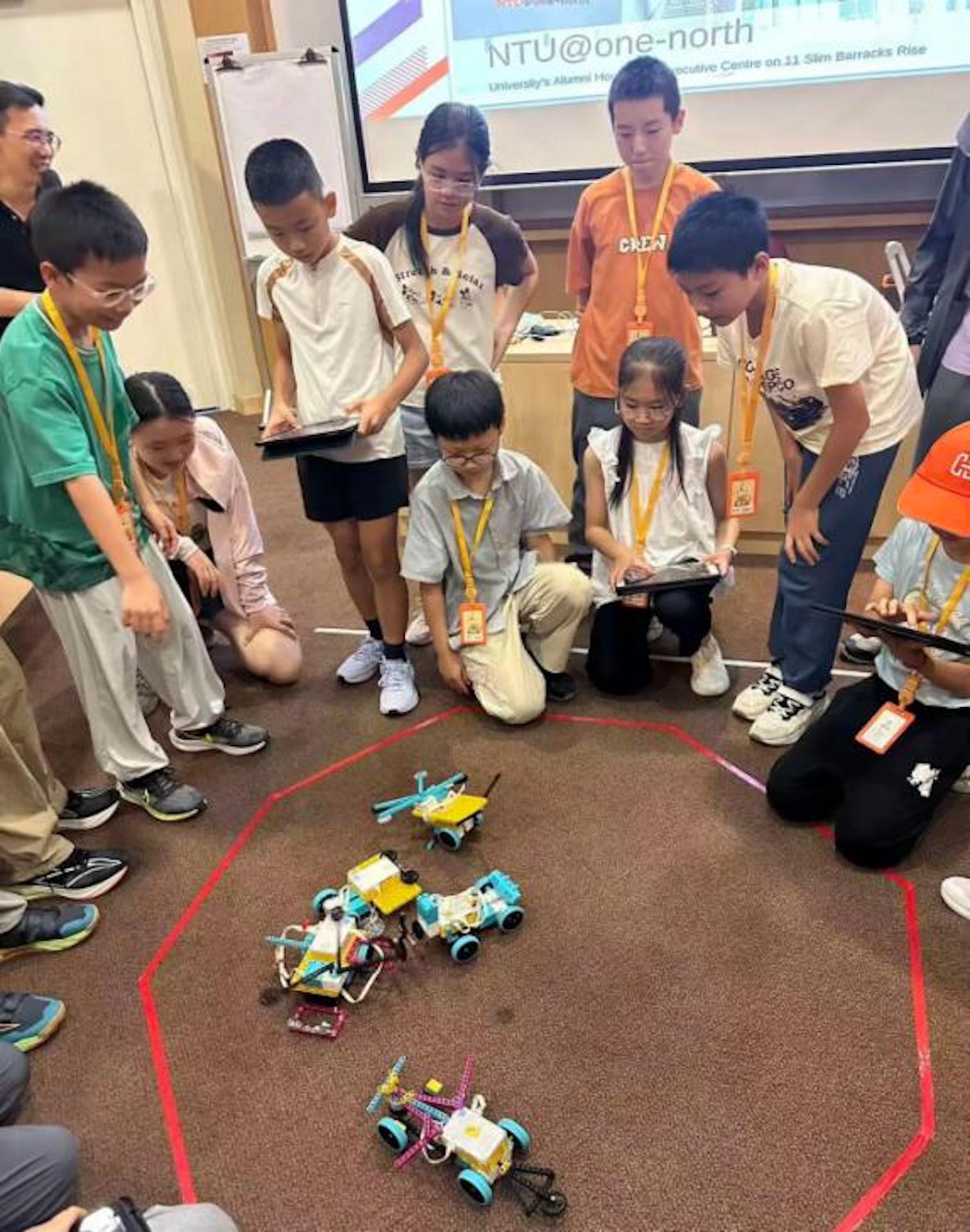 更令人印象深刻的是,学校在研学中注重学习过程,而非单一的结果。当一位学生在新加坡国立大学机器人课程中,因所在小组比分落后而沮丧时,倪玲玲副校长没有急于安慰,而是引导他们分析:“我们尽力了吗?哪些做得好?收获了什么?从其他小组的成功处学到了什么?”——这种“不以胜负论英雄”的评价方式,让孩子们在挫折中依然保持积极心态。事后,那位略感沮丧的学生总结:“我们小组没得奖,但我们每个人都做到了最好。”这种对学习过程的体验觉察,正是终身学习所需要的品质。