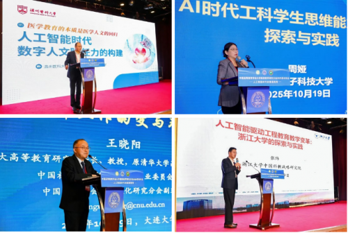 在6场平行专题研讨中,与会学者围绕“人工智能时代素质教育的理念重塑”“智启新程中的素质教育模式创新”“素质教育服务国家重大战略的协同路径”“人工智能时代的教师角色重塑与能力提升”“素质教育高质量发展的未来图景”“‘强化科技教育和人文教育协同发展’的实践探索”等议题,从多个视角进行了深入研讨。来自32所高校的45位代表作专题发言,并同与会代表进行互动交流。会议期间还开设了“批判性思维和人工智能‘双螺旋’提问能力”研修坊。10月19日,大会举行主题报告,西南交通大学党委副书记高平平、大学素质教育研究分会副理事长曹蓉主持报告会。温州医科大学原党委书记吕一军、桂林电子科技大学副校长周娅等8位嘉宾进行分享。