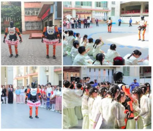 活动现场,坂田综合行政执法队的人形机器人“城城”“管管”也惊喜亮相,手持家风主题横幅与师生们趣味互动,巧妙实现了传统家风文化与现代科技的生动融合。