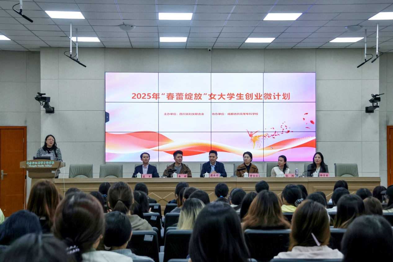 10月28日,由四川省妇联主办的2025年“春蕾绽放”女大学生创业微计划进校园宣讲活动在成都纺织高等专科学校拉开帷幕。成都纺织高等专科学校党委常委、副校长蒲冰远致辞,四川省妇联发展部相关负责同志出席活动,成都纺专文旅、艺术创意设计、智能制造等专业200余名女大学生参加本次活动。