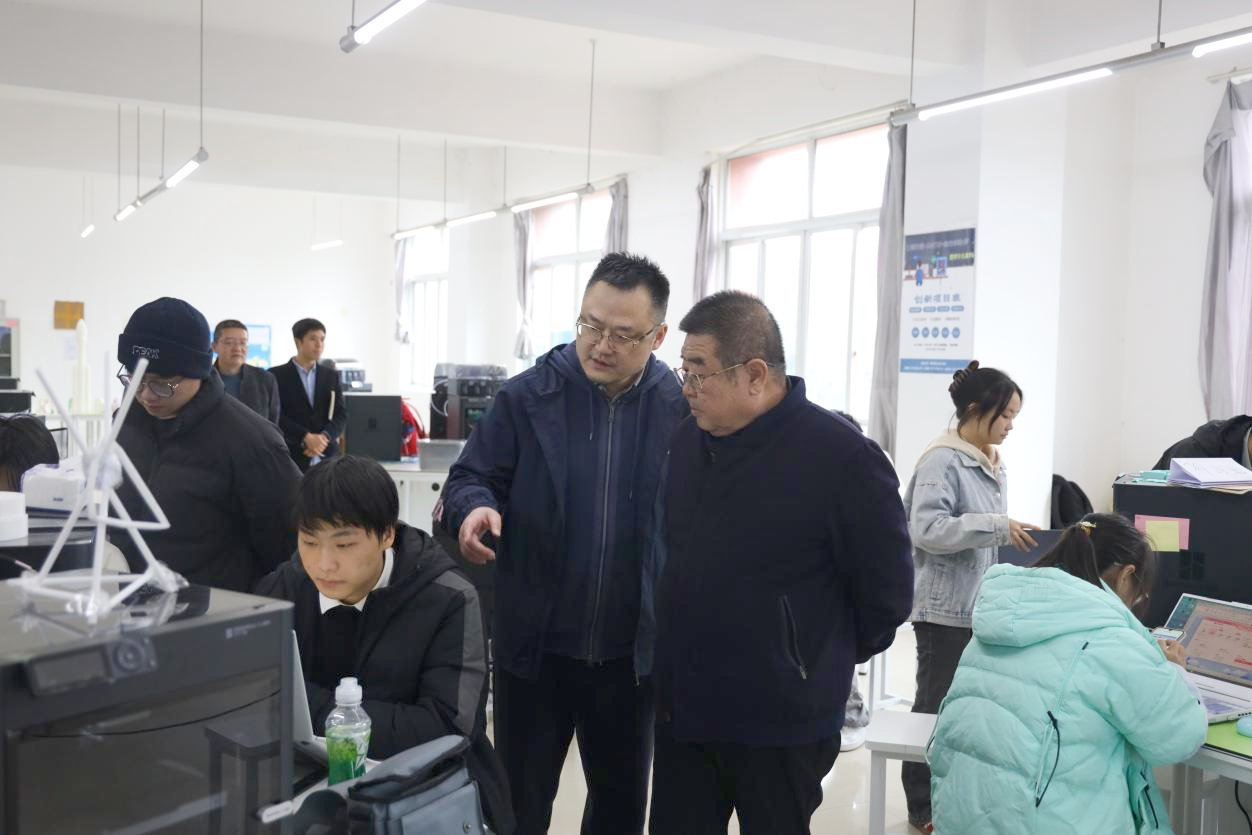 调研过程中,丁高明校长细致观摩学生实操,认真查看3D打印成品,对实训室建设成效给予充分肯定。他指出,产教融合重在“真融真合”,实训室既是技能教学的课堂,更是学生参与真实生产、创造市场价值的重要平台,必须让学生在真实生产环境中掌握核心技能。