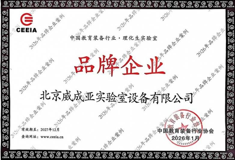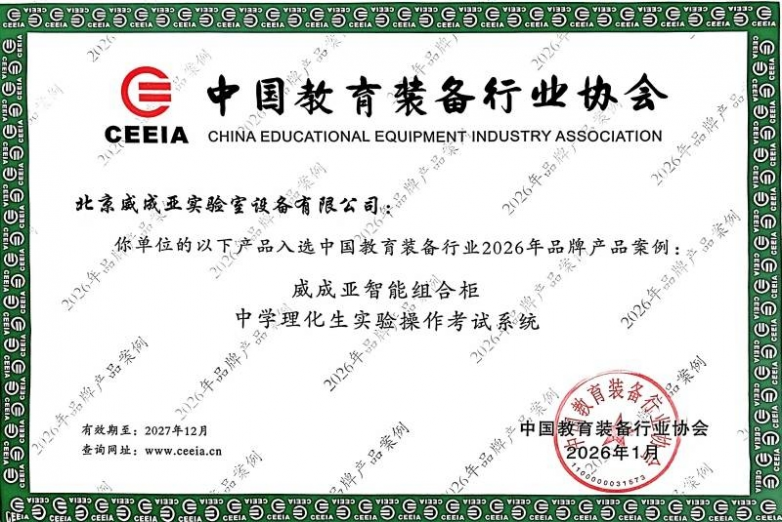 为培育一批具备强劲竞争力的优质产品,进一步提升教育装备产品的质量,中国教育装备行业协会于2025年3月启动2026年品牌产品案例征集活动。此次活动历经网上填报、材料提交、属地审核、资格审查、专家遴选以及公示等环节,历经近一年时间,最终确定94家企业入选中国教育装备行业2026年品牌企业案例名单,109家企业的161个产品入选中国教育装备行业2026年品牌产品案例名单。北京威成亚实验室设备有限公司(简称:威成亚)荣获2026年度中国教育装备行业·理化生实验室品牌企业,同时智能组合柜、中学理化生实验操作考试系统入选中国教育装备行业2026年品牌产品案例,评选结果在中国教育装备行业协会公示。