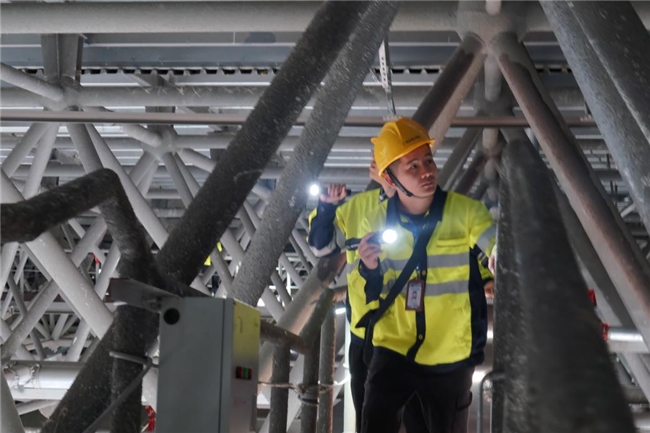春运时分,湛江北站早早迎来首批春运旅客。嘈杂的人声中,很少有人会抬头望向那些整齐划一的钢结构,更不会知道数小时前,曾有人打着手电,一寸寸检查过它们的“健康”。