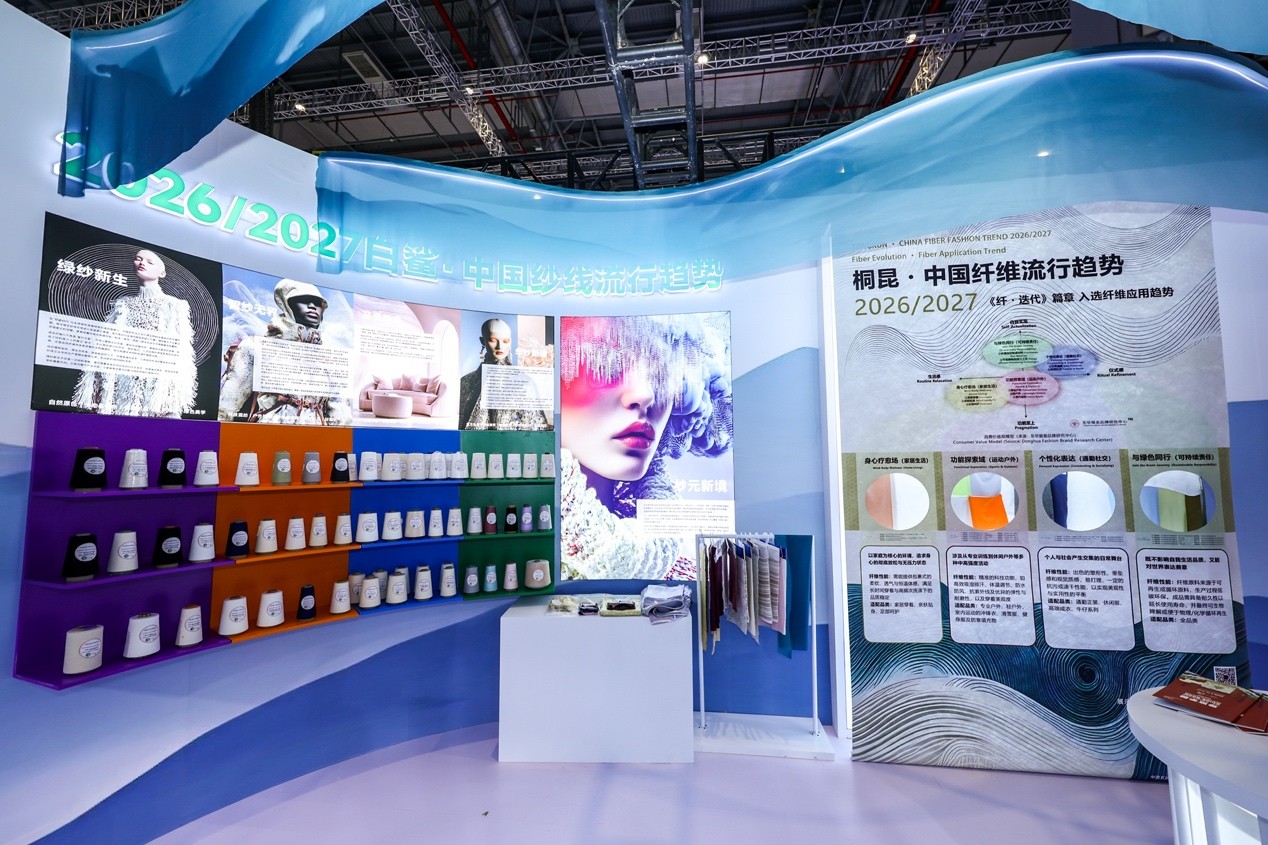 此外,中国纱线流行趋势2026/2027发布了今年的主题“纱元新境”,以及“绿纱新生、智纱无界、至质新境、华纱新潮”四大篇章数十款纱线新品,其延续了纤维的蓄势之力,展现了纤维如何通过纱线这一桥梁,最终流淌进美好生活之中。