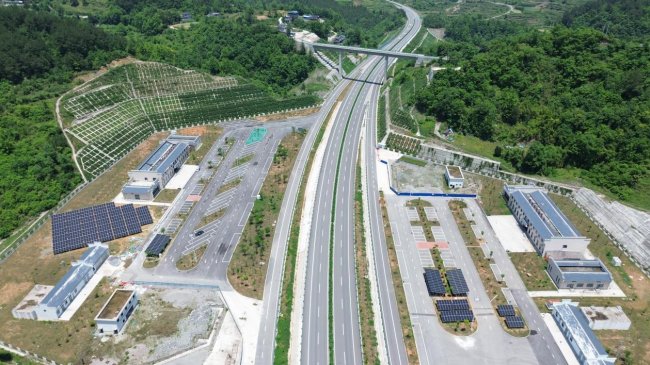 功夫不负有心人,三条高速光伏项目顺利全线并网发电,德余高速思南石林服务区达成“运营期净碳排放为零”目标,荣获“高速公路零碳服务区(五星级)”认证。李源朝感慨:“每一块光伏板的铺设,都是对绿色发展的践行;每一度清洁电力的产生,都是向‘双碳’目标的迈进。”