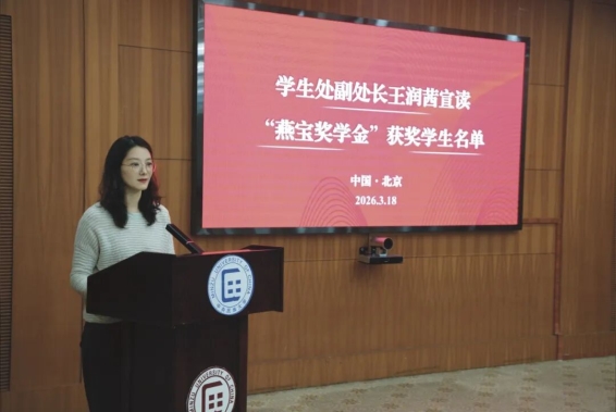 学生处副处长王润茜宣读“燕宝奖学金”获奖学生名单