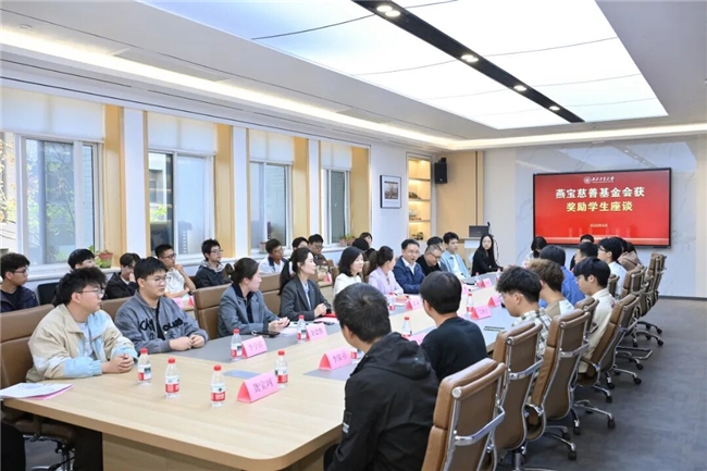 获奖学生代表、动力与能源学院2024级本科生徐佳乐,电子与信息学院2023级硕士研究生陈学知,自动化学院2022级博士研究生王东亨先后发言。他们深情感谢燕宝慈善基金会的慷慨资助和学校的悉心培养,表示将以此次获奖为新起点,传承弘扬西工大"总师育人文化",刻苦钻研、矢志报国,努力成为国防科技领域的拔尖人才,以实际行动回馈社会、传递爱心。