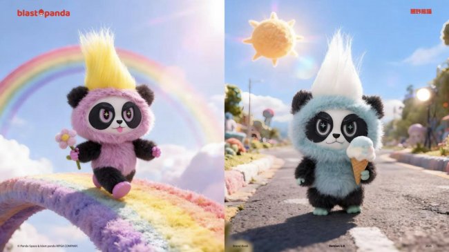 “暴炸熊猫”就这样被编译出来了。它是对传统熊猫IP的一次彻底“反编译”。不可爱,不讨好,脾气暴躁,自带吐槽,设定是“只有在爆炸的缝隙里才能穿越时空”。王成福把它定义为一个“怪咖”,目标用户是那些“心里有火,脸上有疤”的普通男性。它不完美,总办错事,像极了每个在生活中碰壁、内心却憋着一股无名劲的普通人。