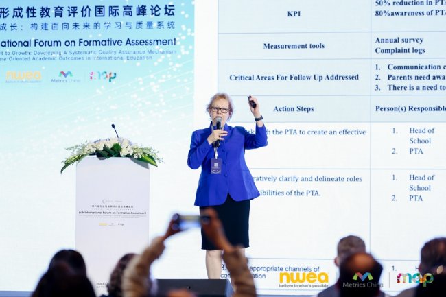 在国际学校认证组织视角下,WASC国际认证副总裁Margaret Alvarez 博士将讨论推进到更系统的层面。她指出,数据真正发挥作用的前提,是学校内部形成对数据的共同理解与使用方式,即“数据文化”的建立。她结合认证实践提出,学校不仅需要明确“收集什么数据”,更需要思考“如何理解这些数据”以及“如何基于数据采取行动”。当数据分析能够自然嵌入学校的反思与决策流程时,持续改进才有可能成为一种稳定机制,而非阶段性任务。