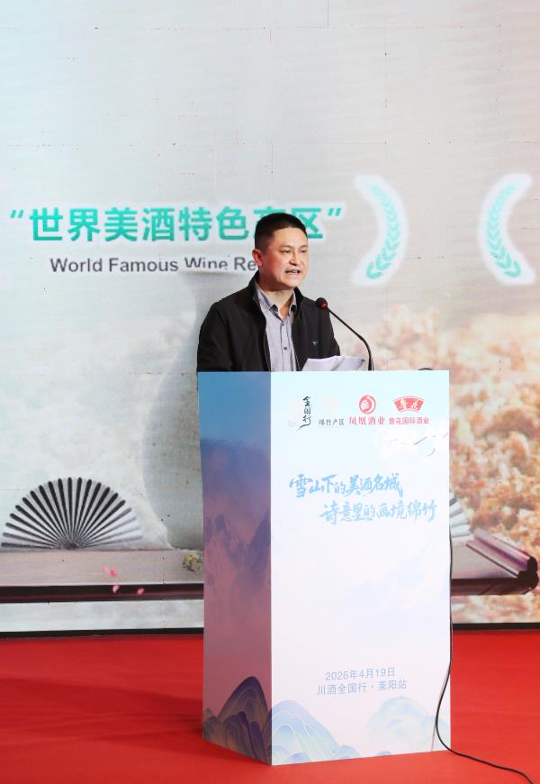 2026年4月19日,以“凤凰衔酒醉梨乡,鲁花匠心酿新章”为主题的“2026川酒全国行”·莱阳站暨绵竹白酒百城行活动在“中国梨乡”—山东莱阳隆重举行。来自川鲁地区的政府领导、行业协会负责人、鲁花集团领导、凤凰集团领导及媒体嘉宾齐聚一堂,共叙川鲁情谊,共谋酒业发展。