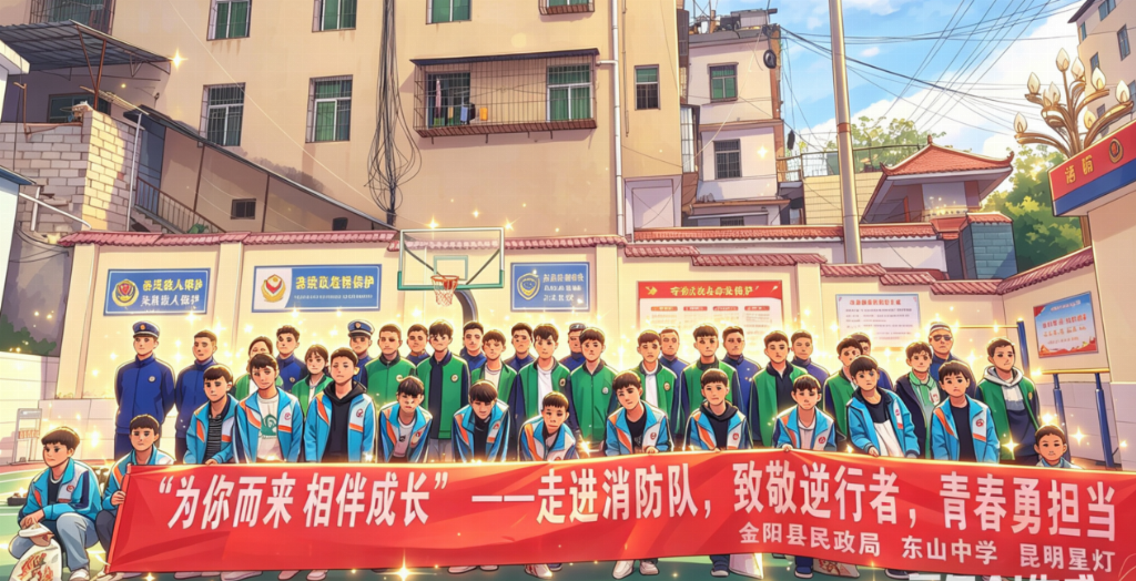 此次活动的顺利开展,离不开金阳县民政局、东山中学以及金阳县消防大队的全力支持与密切配合。对于东山中学的27名学生来说,这不仅仅是一次走出校园的参观活动,更是一堂生动的生命教育课和理想启蒙课。在短短半天的时间里,孩子们亲眼见证了消防员过硬的本领与无私的奉献精神,亲手操作了灭火器与救援设备,亲身体验了攀爬绳索与穿戴战斗服的不易。这些经历,远比书本上的文字更加直击心灵。
