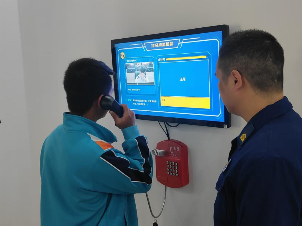 体验完训练项目后,大家来到消防大队六楼的应急消防科普教育展馆。展馆内设置了各种互动游戏设施,极大激发了孩子们的兴趣。在消防员的讲解引导下,同学们纷纷上前尝试:通过“电气火灾成因模拟体验系统”,他们直观了解了电线老化、过载用电等生活中的火灾隐患;在“模拟报警游戏”中,他们学习到火灾发生时如何保持冷静、准确说出地点和火情。寓教于乐的方式,让消防知识在欢声笑语中默记于心。