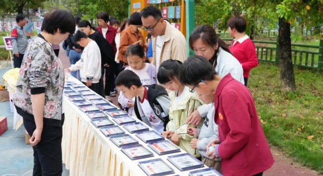 舞台之外,文化科技展示区同样吸睛无数。展示区围绕“乡愁、古韵、风物、红脉”四大主题,立体呈现罗溪侨乡文脉的深厚底蕴;关工委“五老”志愿者驻点宣讲,讲述罗溪美食技艺的传承故事,让传统文化代代相传;“科技助农·科技强产”专区通过图文展示、实物教具、现场讲解等方式,生动呈现特派员制度在罗溪的实践成效;一旁的扎染工艺成品展示区,色彩斑斓的扎染作品吸引众多游客驻足观赏、动手体验,传统技艺与现代科技在此完美交融,碰撞出别样火花。