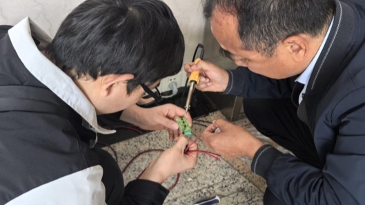 从技术方案提出到样机完善,御电卫宁团队始终坚持以工程应用需求为导向,不仅聚焦核心技术突破,也持续推进装置的系统优化。围绕局部放电信号微弱、现场电磁干扰复杂、设备长期运行稳定性要求高等问题,团队依托电容耦合技术提升微弱放电信号捕捉能力,并通过优化信号处理算法增强装置在复杂电磁环境下的抗干扰性能。同时,团队不断完善实时监测、数据存储、异常预警和远程诊断等功能模块,使装置在检测精度、运行稳定性和现场易用性方面更加贴合电力应用场景需求。图2展示了团队开展硬件调试的工作场景。围绕参数标定、硬件联调和现场模拟验证等关键环节,团队反复测试、持续优化,不断推动产品从实验室样机向工程化应用转化。